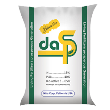 Bioactive DAPs is a next generation multinutirent fertilizer. Bioactive DAPs is an activated DAP enriched with Bioactive Sulfur. Bioactivation of Sulfur and DAP has been done  with patent Bioactivation technology of Niha Corp USA. It is coated with Bioactive Sulfur & activating agents, a blend of Acclimatized Beneficial Microbes consortium, Microbes Growth promoting Organic material blend. This Bioactivation ensures more nutrient availability to plant and less fixation of P2O5 in soil. Giving significant higher yield vs classical DAP