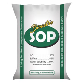 Bioactive SOP is 99% water soluble and can be applied with irrigation water. Its sulfate contents ensure quick supply of sulfur to plants. It is ideal for vegetables, fruits and EC/salinity sensitive crops.